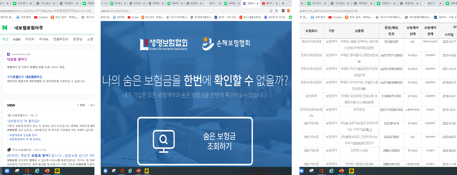 많은 보험을 찾을 수 있고, 보험금도 찾을 수 있다고 합니다.