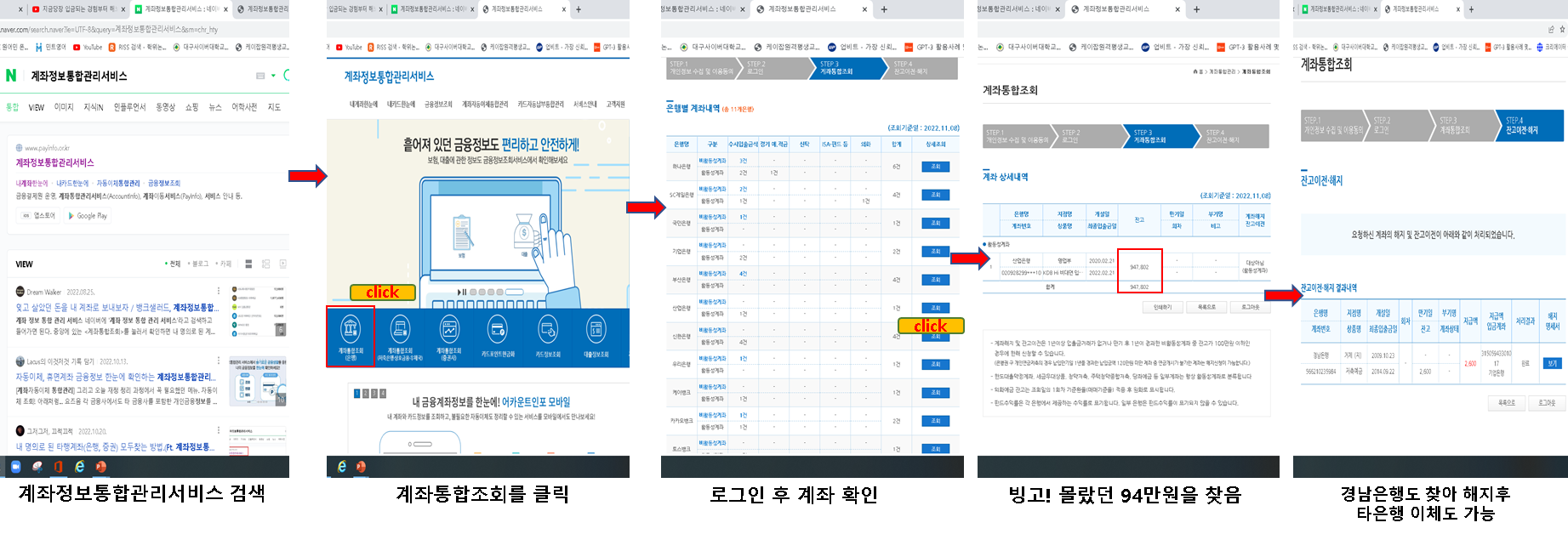 모르는 돈을 찾아보세요 그리고 바로 사용 계좌로