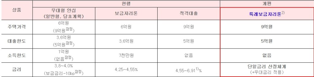 - 특례보금자리론 대상은 기존에 주택가격 6억원 기준에서 최대 9억원까지 신청이 가능하도록 확대 적용되었습니다.